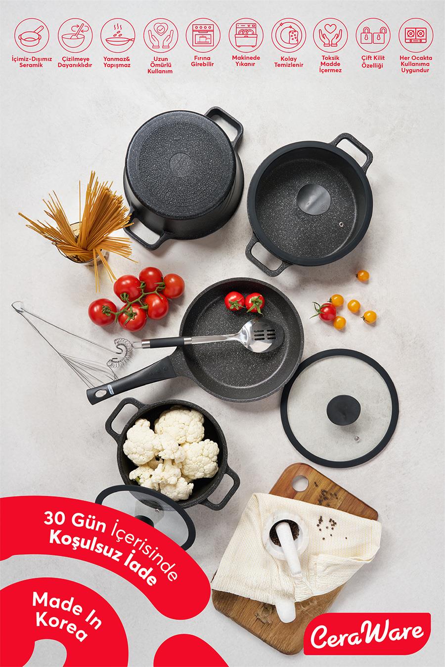 Ceraware Vetta 10 Parça Megastone Kaplama Yapışmaz Tencere Tava Seti