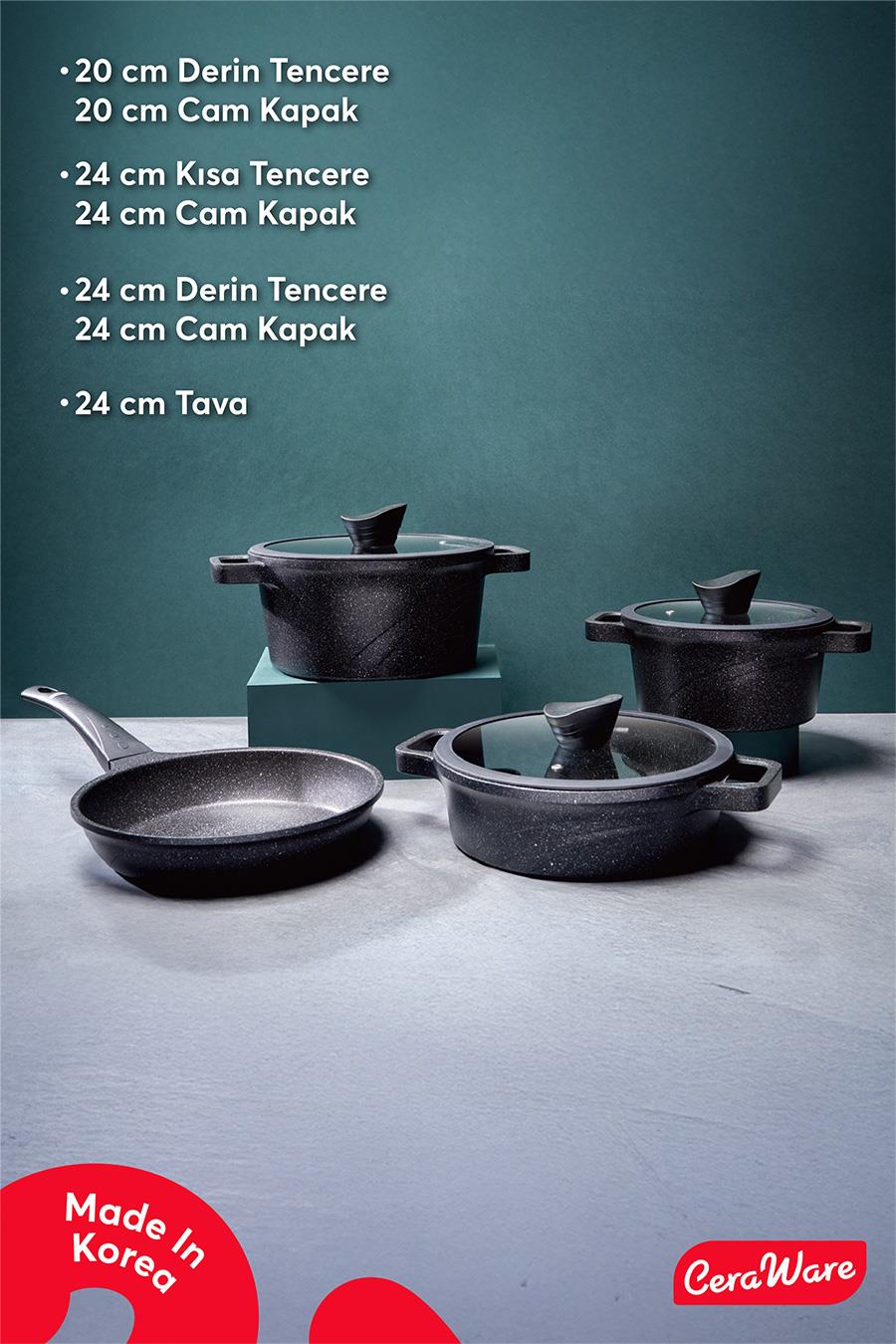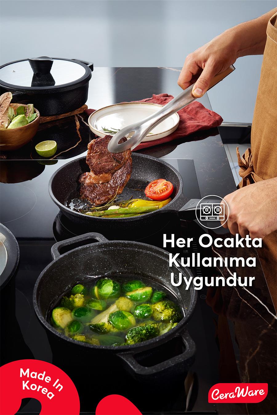 Ceraware Vetta 9 Parça Megastone Kaplama Yapışmaz Tencere Tava Seti